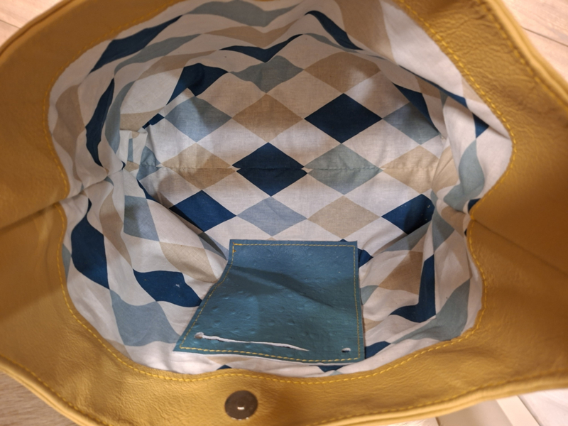 Super leuke tas van soepel zacht geel runderleer. De tas is gevoerd met ruitjes stof, sluit d.m.v. een magneetsluuiting en heeft een vakje voor je mobiel.