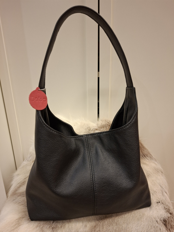 Bolsa Bien BlackSuper leuke tas van soepel zwart mat runderleer. De tas is gevoerd met roze/bloemen stof, sluit d.m.v. een magneetsluuiting en heeft een ritsvakje in de tas.